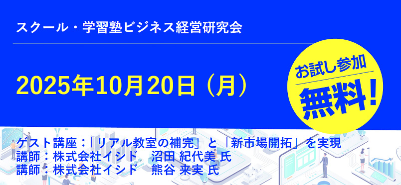 <無料お試し参加受付中>10月20日(月)スクール・学習塾ビジネス経営研究会 総会【お申込みはこちらから】